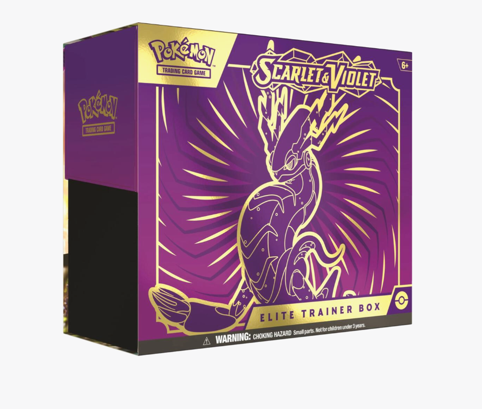 The Pokémon TCG: Scarlet & Violet Elite Trainer Box includes: • 9 Pokémon TCG: Scarlet & Violet booster packs • 1 full-art foil promo card featuring Miraidon • 65 card sleeves featuring Miraidon • 45 Pokémon TCG Energy cards • A player’s guide to the Scarlet & Violet expansion • 6 damage-counter dice • 1 competition-legal coin-flip die • 2 plastic condition markers • A collector’s box to hold everything, with 4 dividers to keep it organized • A code card for Pokémon Trading Card Game Live